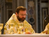 Очікуючи приходу Святішого Отця, під час співу «Многая літа», Глава УГКЦ представив присутніх ієрархів, духовенство, співробітників дипломатичного корпусу, дякуючи за молитовну присутність численним паломникам. А далі відслужив Акафіст до святого священномученика Йосафата.