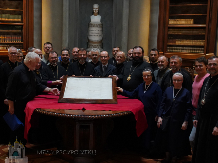 Прибувши до Флоренції, делегація УГКЦ відвідала музей-бібліотеку “Medicea Laurenziana”, в якій зберігається оригінал актів Флорентійського собору 1439 року та Луцький псалтир 1360 р. Єпископи УГКЦ мали нагоду побачити оригінальний підпис митрополита Ісидора та єпископа Авраамія, правдоподібно єпископа Суздальського, — представників Київської митрополії на Флорентійському соборі. Окрім цього, українські єпископи побачили переклад актів старослов’янською мовою, які були виготовлені для делегації Київської митрополії.